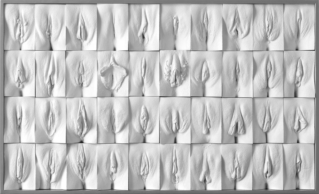We learn that women have large and small “shame-lips”. In German we often call them shame-lips! And women whose inner labia are bigger than the outer ones may start to think something is wrong with them. Porn in particular doesn’t help there, because it seems that what is shown above all is a standard vulva, which is similar to the illustrations from the books. Luckily, there is now the “great wall of vagina” that shows both women and men that vulvas, like penises, come in many shapes and sizes. (By the way, colors too.)