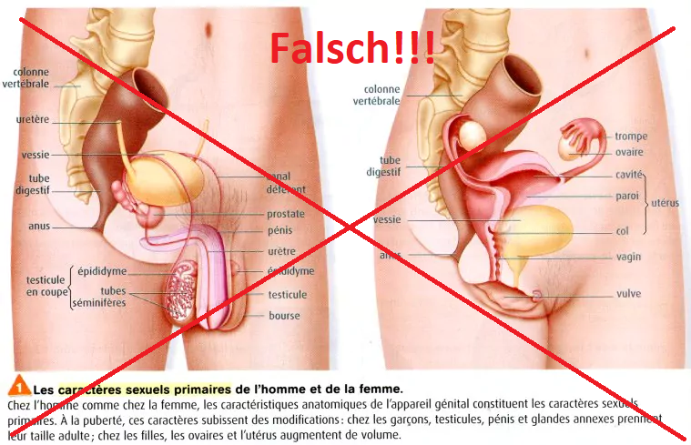 Zum Vergleich hier noch einmal ein Bild, das wir so oder so ähnlich wohl alle gut kennen: Die Frau mit lediglich einem „Punkt“. Es ist schockierend! Und so wird es leider in den meisten Fällen immer noch gelehrt! Die ersten Verlage überarbeiten inzwischen ihre Bücher. Mal sehen wie lange es dauert, bis das Bild oben überall angekommen ist und das Bild unten der traurigen Vergangenheit angehört.